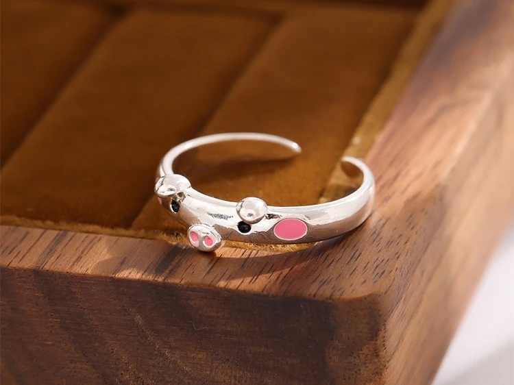 New Fashion Sweet Pig 925 Sterling Silver Jewelry Personality Cute Animal Pig Popular Exquisite Opening Rings R222